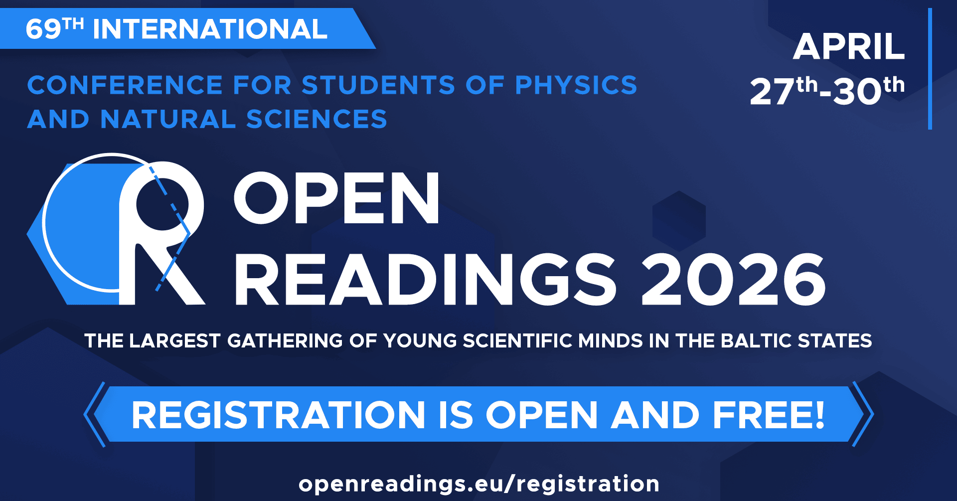 The 69th International Scientific Conference for Students of Physics and Natural Sciences gathers people to discuss, learn, exchange and share their scientific experience, meet key experts and enjoy an exciting programme. The conference includes lectures of well-known, leading and accomplished scientists and presentations of students’ research. “Open Readings 2026” gives an opportunity for BSc, MSc and PhD students who are doing their scientific research, to present it to a larger audience, get constructive criticism and useful advice.