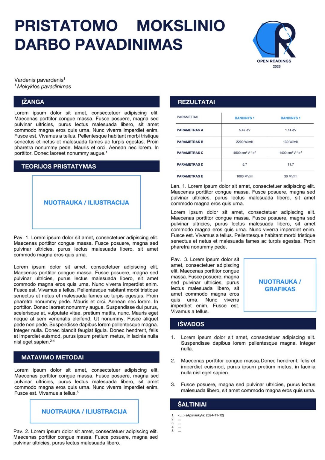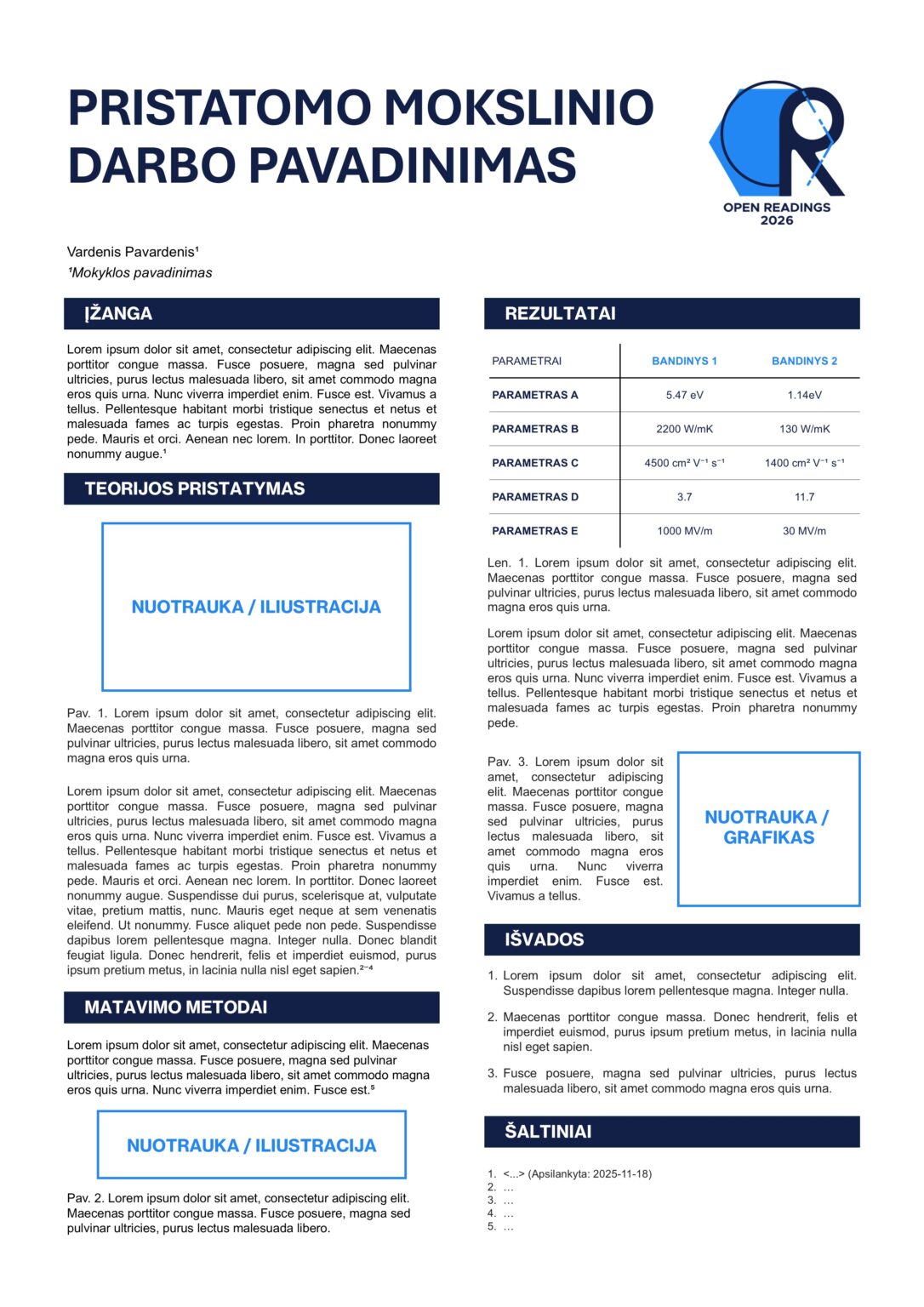 Kviečiame visus gamtos mokslais besidominčius ir eksperimentuoti mėgstančius moksleivius pradėti planuoti bei atlikti mokslinius tyrimus ir pristatyti savo mokslinius darbus bei eksperimentus konferencijos “Open Readings 2026” Moksleivių sesijoje!
