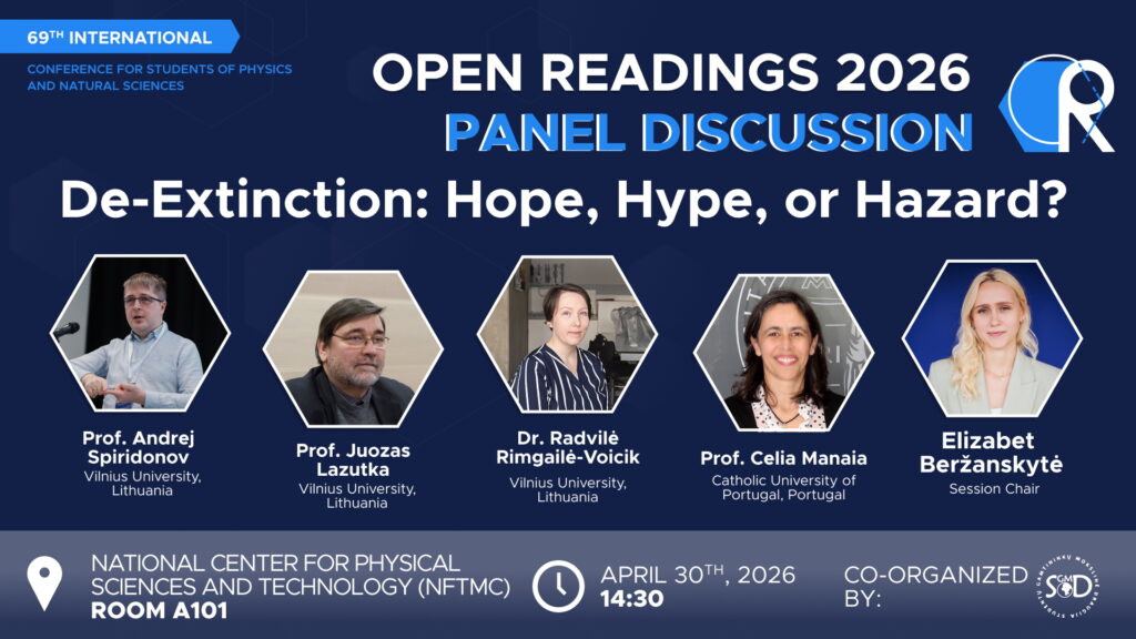 We are delighted to announce that this year’s panel discussion was organised in partnership with Student Scientific Society of Naturalists (Studentų Gamtininkų Mokslinė Draugija).