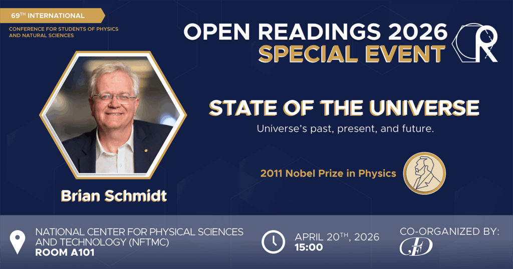 Open Readings is excited to host a Special Event for the fifth year in a row! This year we invite you to join a Nobel laureate Professor Brian Schmidt’s lecture “State of the Universe”.